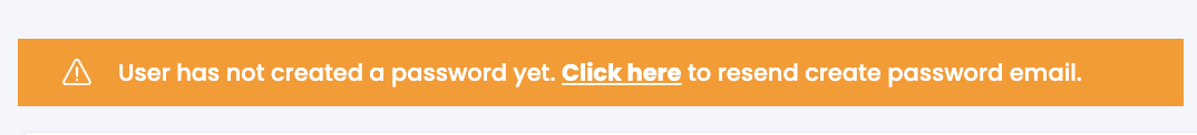 Sometimes a user may need their password creation to be reset. Admins can manage this easily by going to their account and pressing click here on the banner which appears towards the top of the screen.