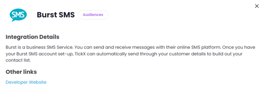 A step-by-step guide to connecting Burst SMS with TickX IQ to sync customer contacts automatically.