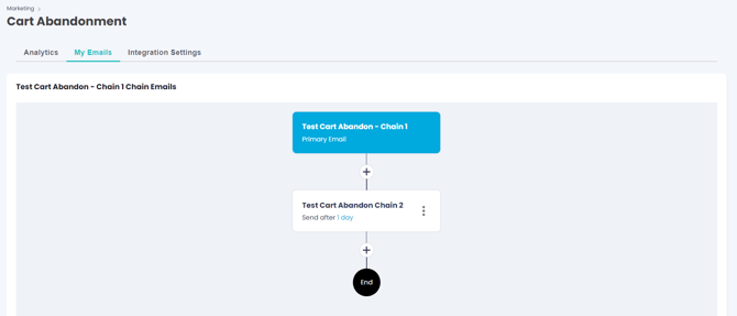 You can create a chain by going to Cart Abandonment > My Email > Click on Actions next to the email you would like to create a chain from > Chain Emails