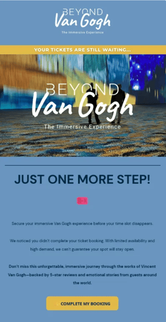 With TickX IQ you can also create chain emails so you can send multiple emails to your drop-offs - changing the content each time to create more urgency, triggering only if the customer has not yet converted.