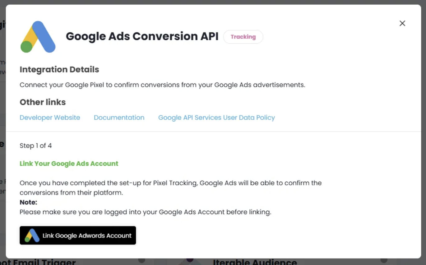 5. Follow the steps to link your Google Ads Account (ensure you accept all of the terms/access)