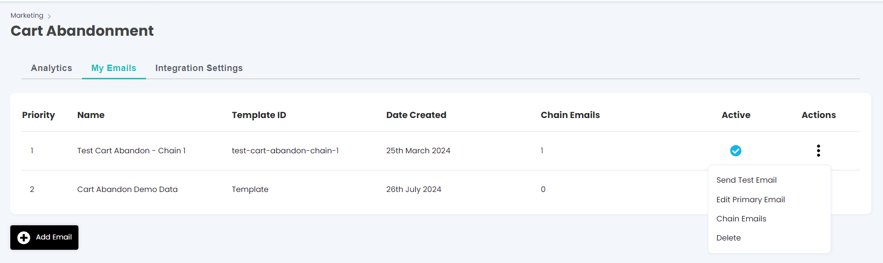 - Go to Cart Abandonment > Integration Settings > Iterable > Activate Integration