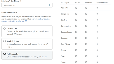 - Create Private API Key > Add Name > Full Access > Save