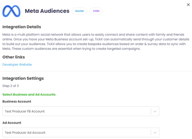 A step-by-step guide to connecting Meta with TickX IQ to sync customer audiences for targeted advertising.