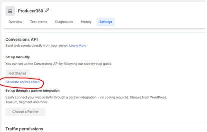 - Under Settings, scroll down to Conversions API and click "Generate access token"