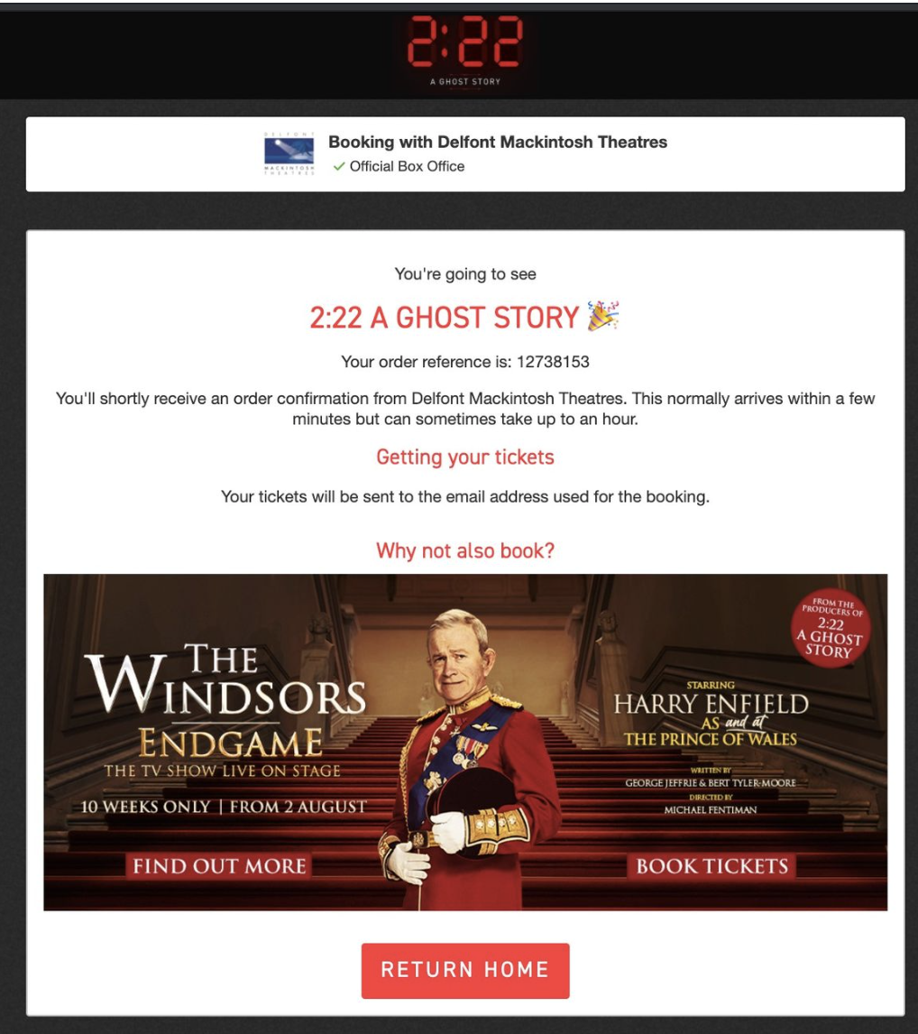 The post-purchase banner feature provides the opportunity to cross-promote another production or upsell additional products. You may even consider using a post-purchase banner to inform customers they can nominate or vote for your production for relevant awards or as part of any sponsorship deals or brand partnerships you have secured.