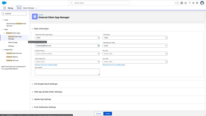 Step Three: Click New External Client App in the top right.