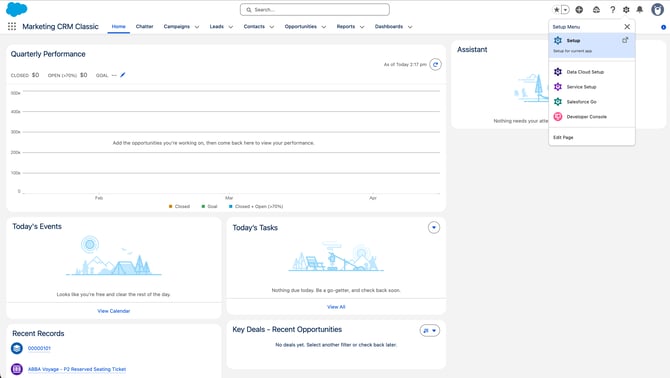 Step One: Navigate to the cog in the top right of Salesforce and go to Setup.