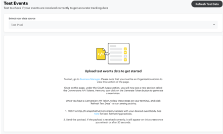 It will take about an hour for any Conversions API events to start pulling through to SnapChat. Once you've given it some time you can check it's working by: