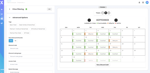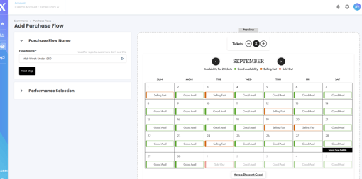Purchase flows can be set up to display exactly what you want the customer to see at the calendar or seat map stage.